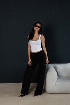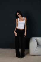 The Everyday Cotton Blend Trouser features a soft yet sculpting fabric with a clean silhouette and hidden front closure. Not a suit pant, not a jean — just perfectly in between.