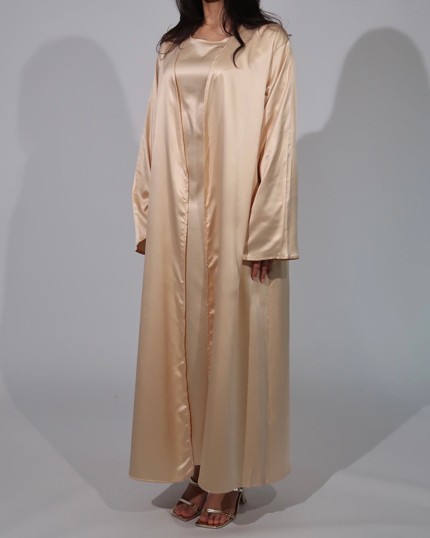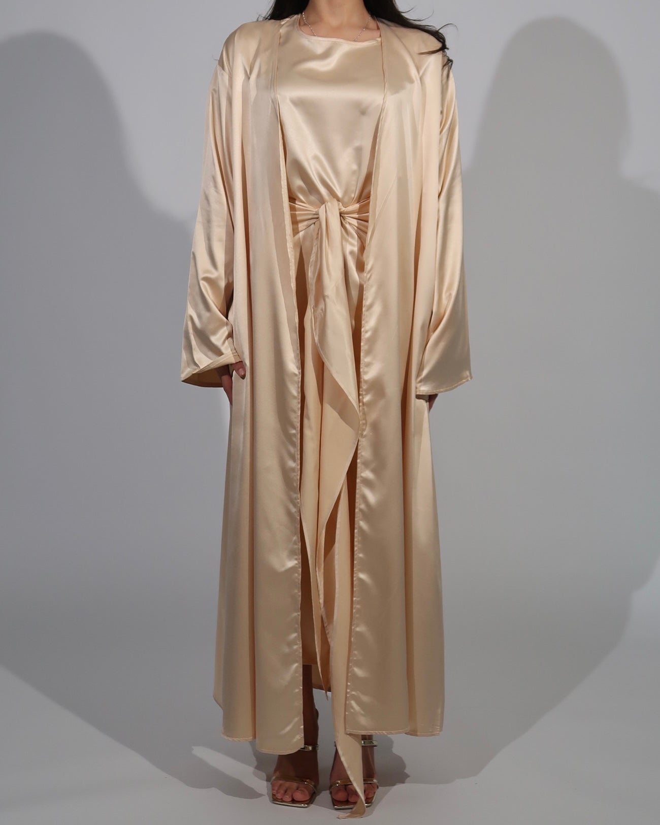 3 Piece Satin Abaya Set - Sunlit Gold