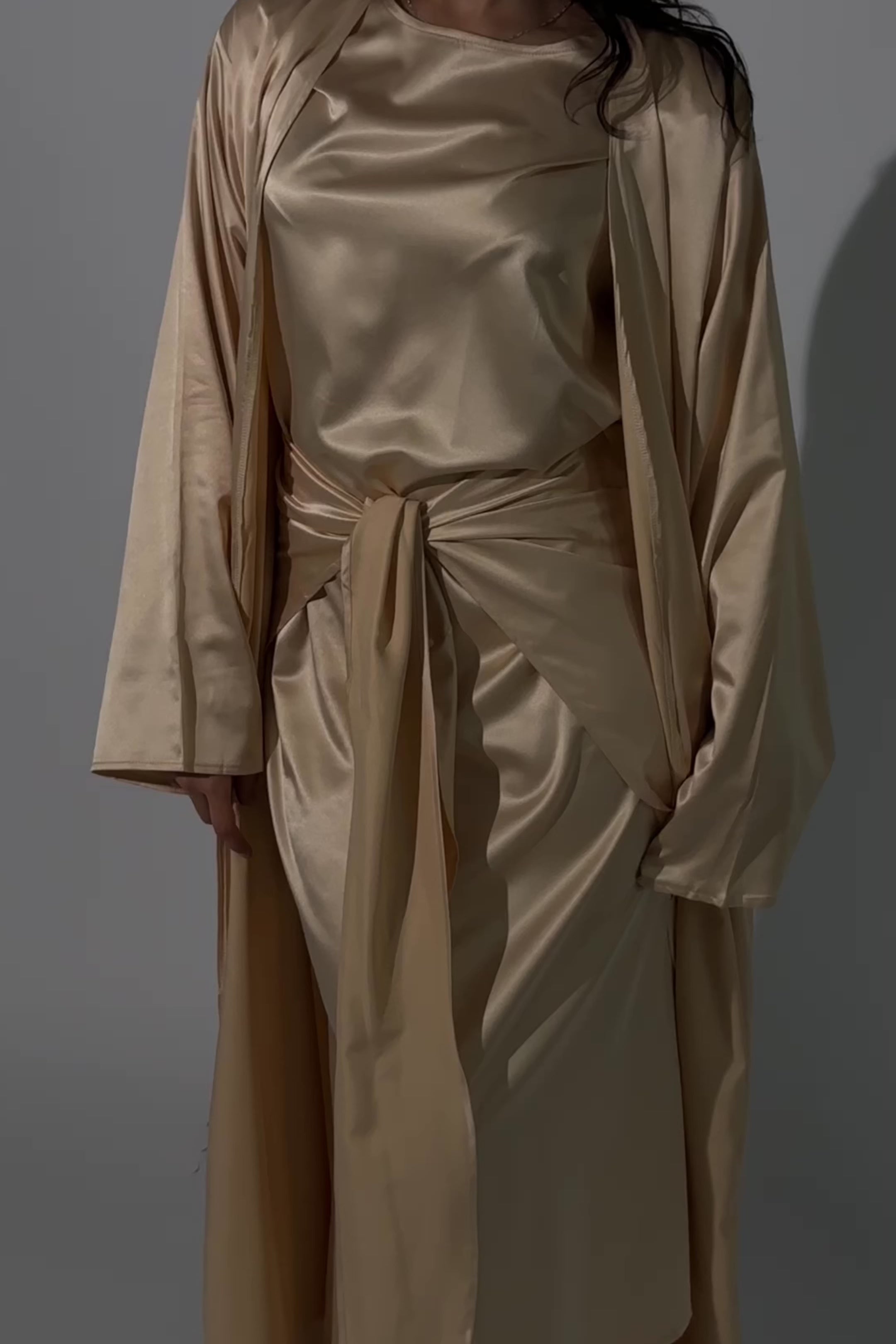 3 Piece Satin Abaya Set - Sunlit Gold