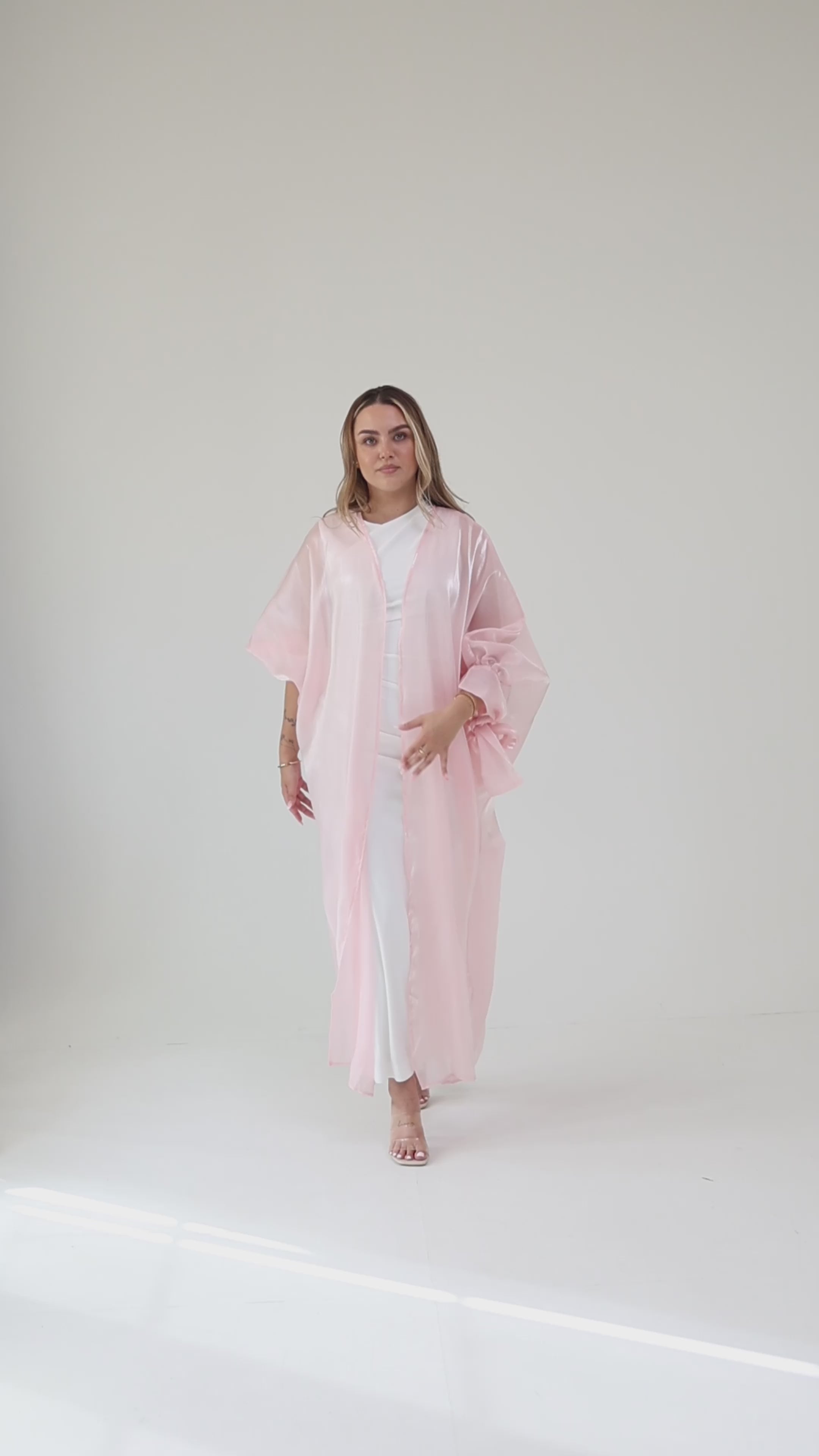 Introducing our elegant Sheer Chiffon Kimono in "Blush Petal," a timeless addition to your wardrobe that embodies grace and sophistication. This kimono is crafted from luxurious chiffon fabric, delicately embroidered to enhance its refined beauty, making it a perfect choice for any occasion.